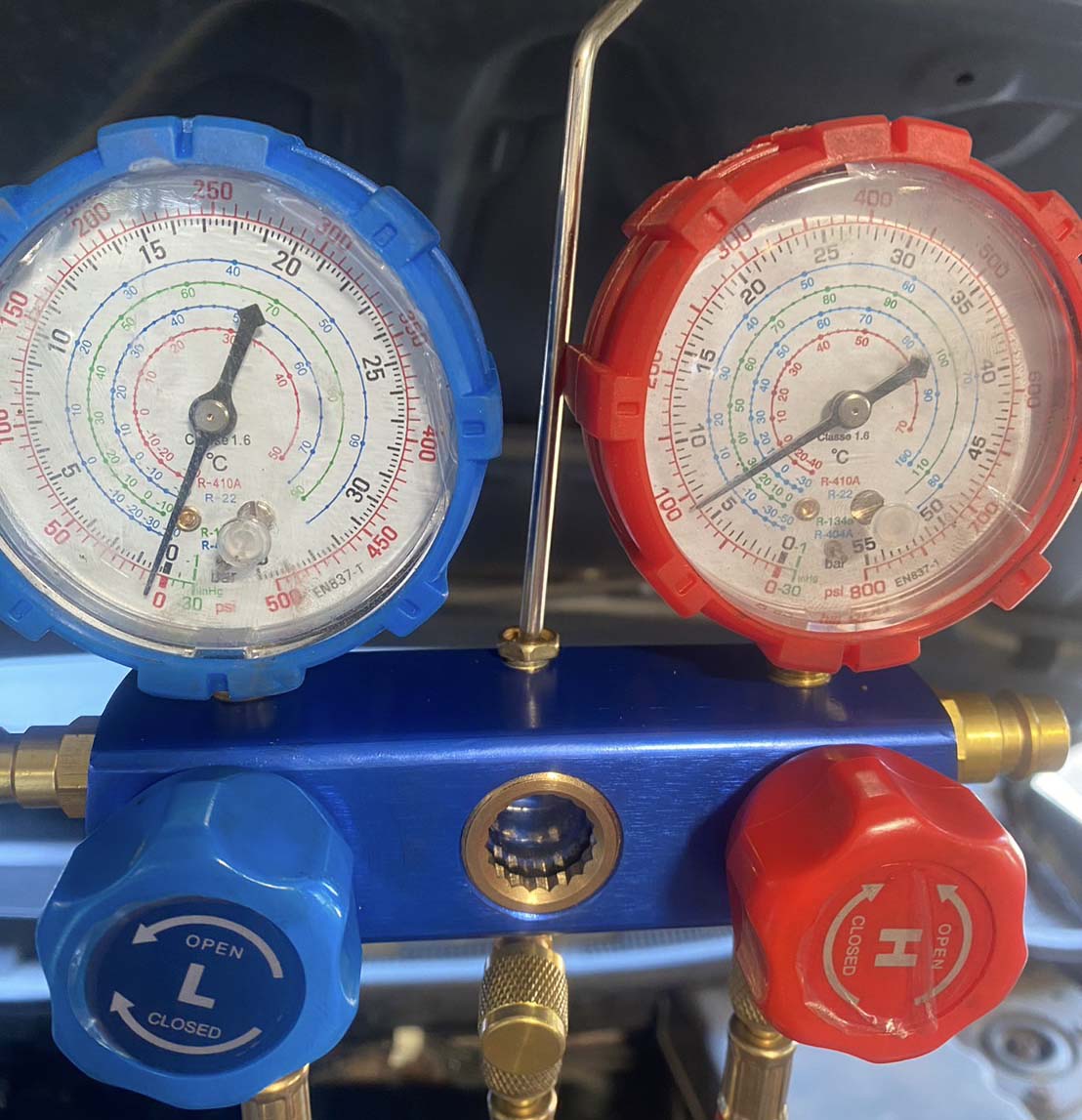 เมื่อเราต่อเมนนิโฟร์เกจเข้ากับระบบปรับอากาศรถยนต์แล้ว