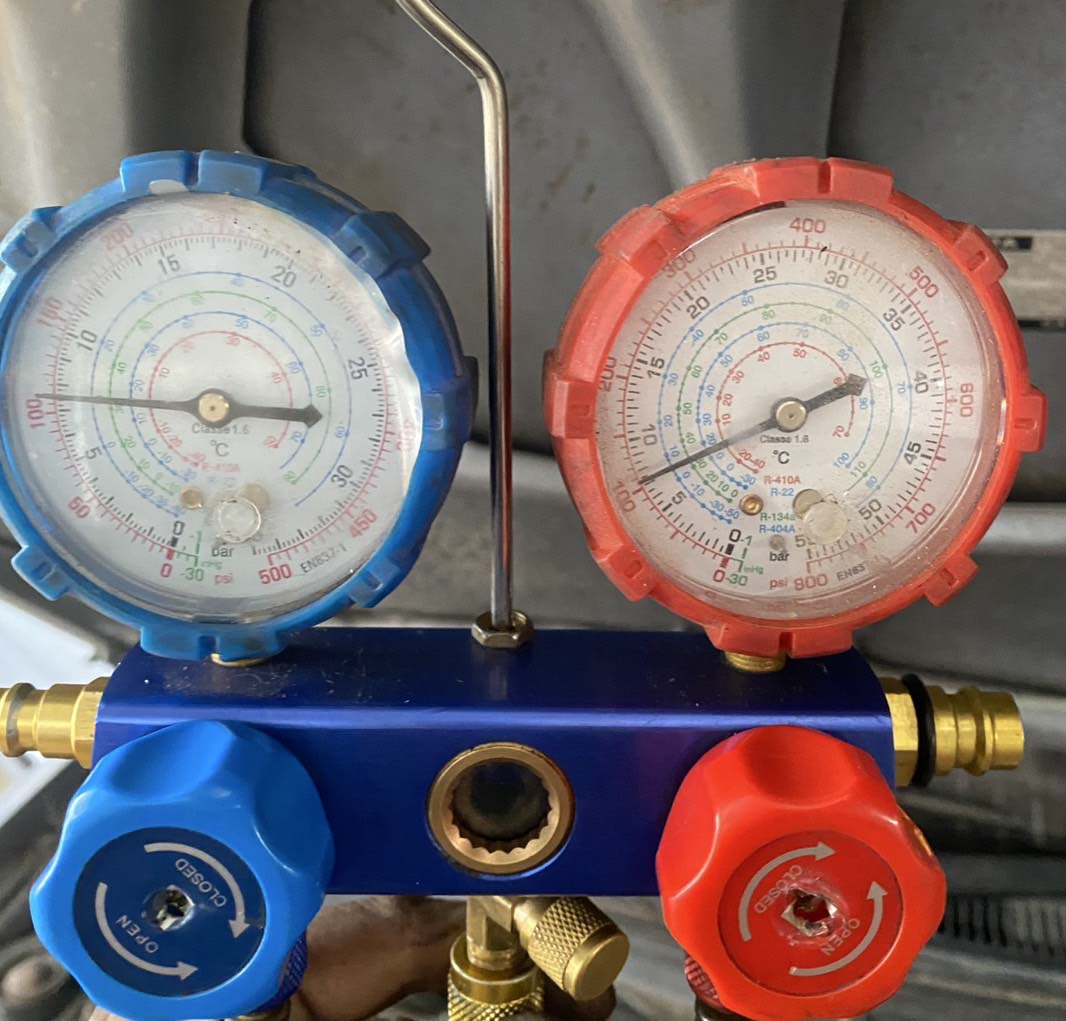 โดยที่ความดันปกติที่อ่านได้จาก เมนนิโฟร์เกจ ในระบบปรับอากาศรถยนต์ จะมีค่าเกณฑ์อยู่ที่