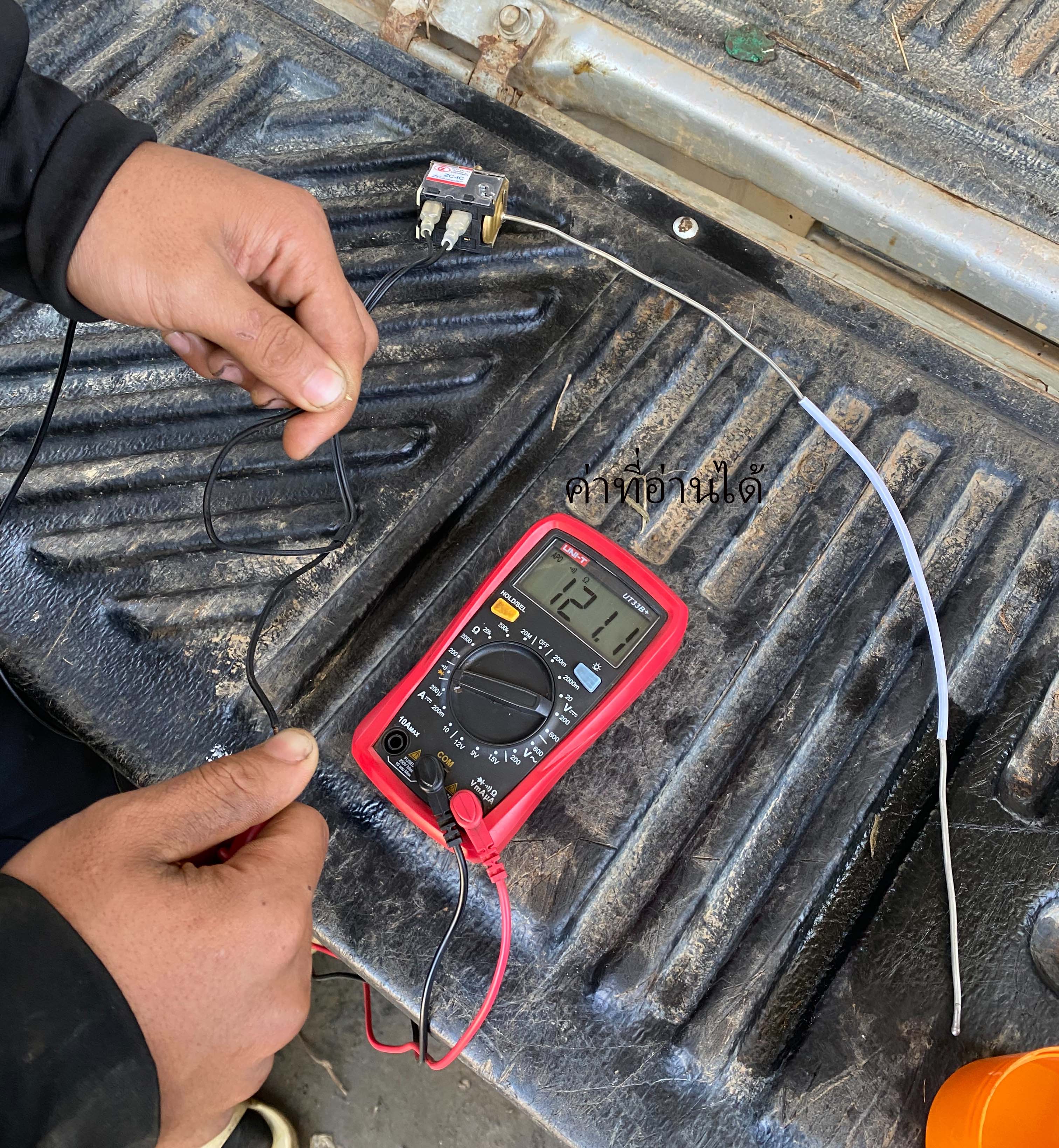 -ค่าความต้านทานที่มัลติมิเตอร์จะลดลง นั้นแสดงว่า สวิทช์ temp ยังดีอยู่