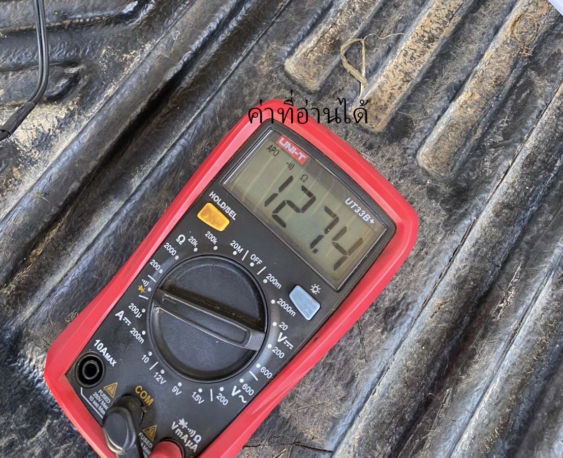 -ปรับมัลติมิเตอร์ไปยังตำแหน่งวัดค่าความต้านทาน (โอห์ม)